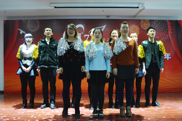 慶典現(xiàn)場(chǎng),全體員工同唱司歌